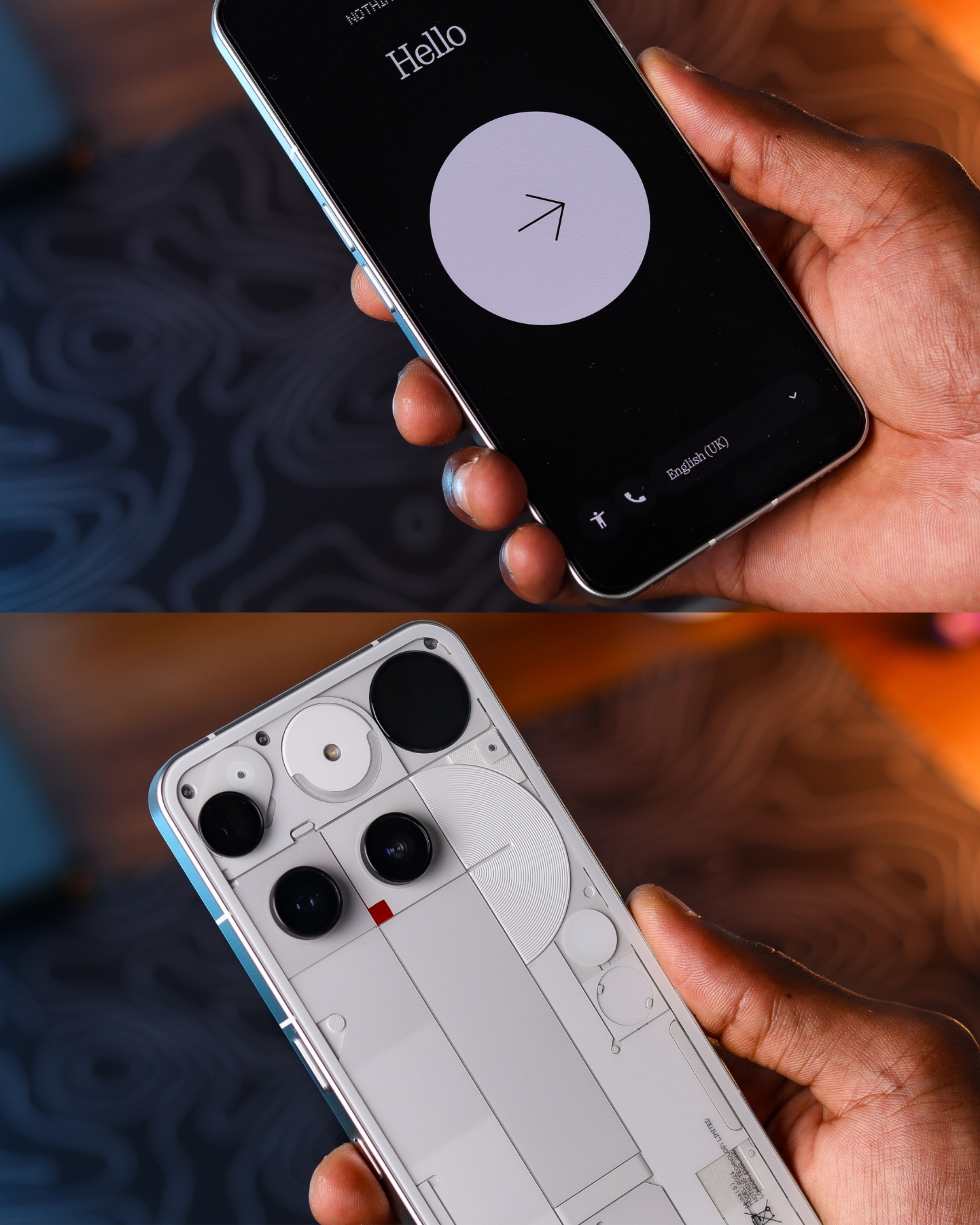 The design immediately stands out with its signature transparent back and the iconic Glyph interface. The lights not only give the phone a unique visual identity but also add practical functionality for notifications and interactions. It feels slim, lightweight, and very comfortable to hold, giving a refined first impression