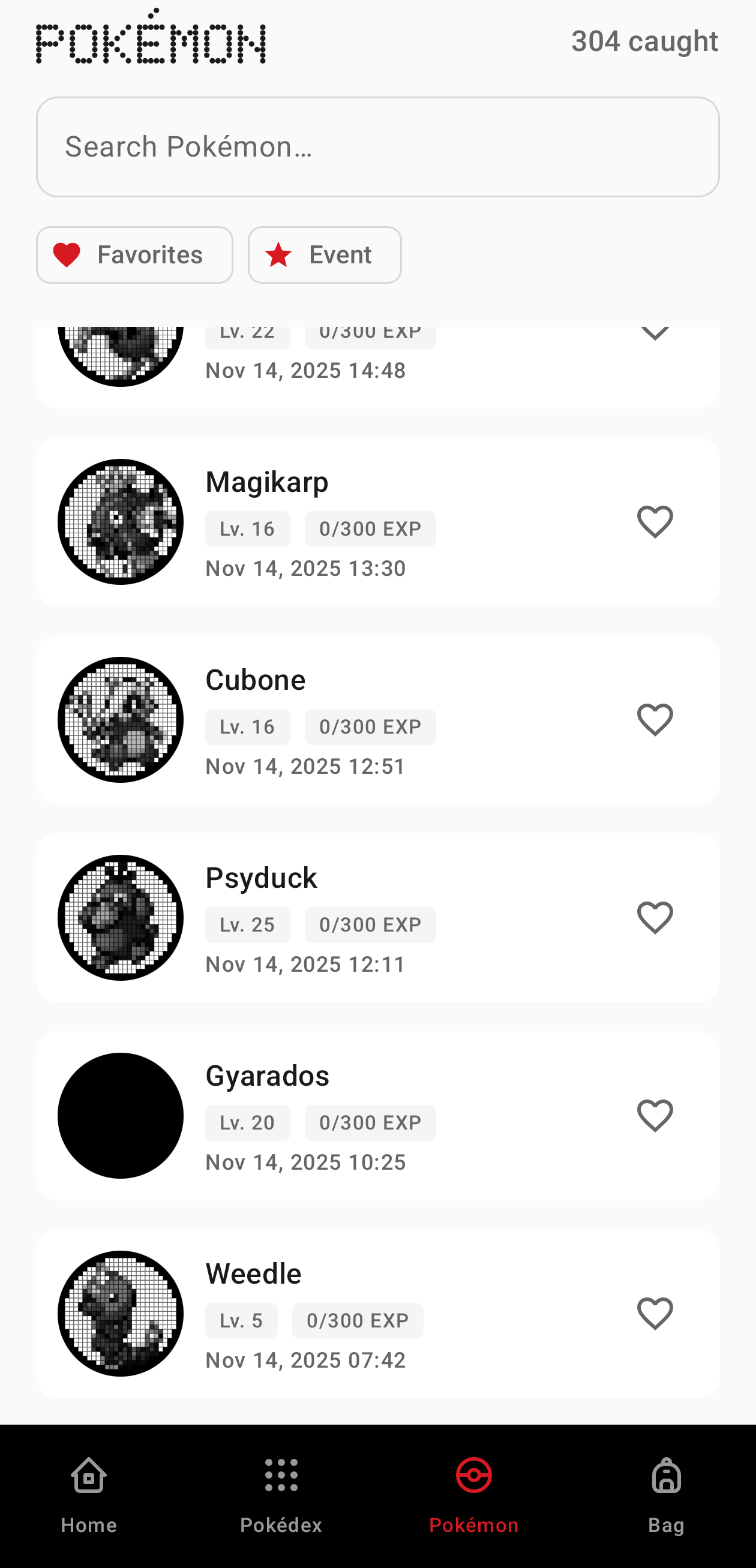 Note that Gyarados will appear in place of the now-evolved Magikarp, not as a new Pokémon at the top of the list.