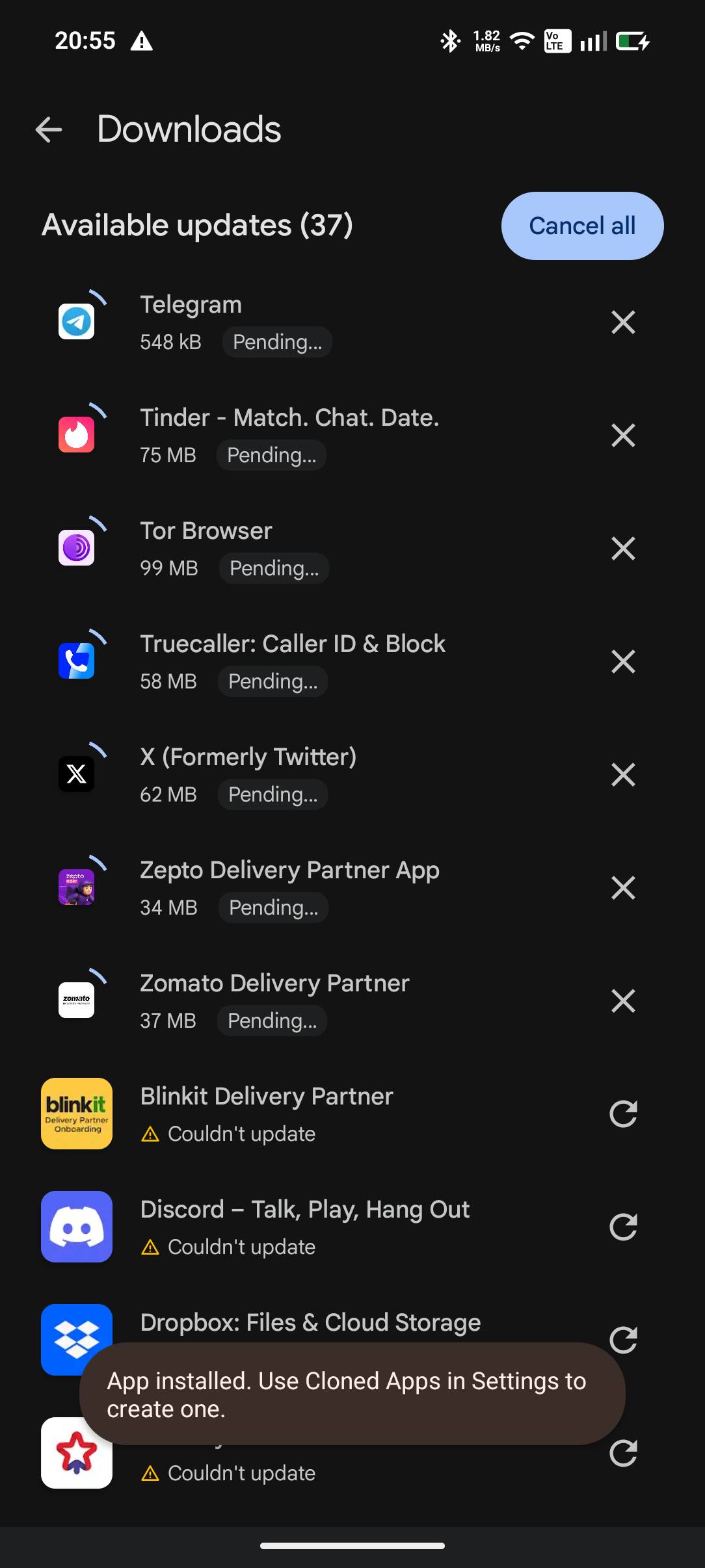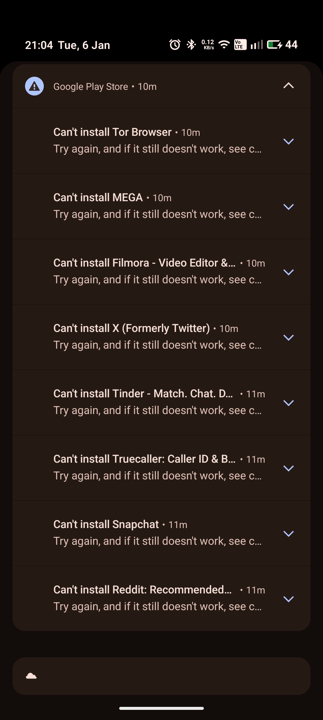 I am unable to update my application it's showing updates on playstore , I am trying to update and it's getting started as well but later its showing ( try again and if still doesn't work see common ways to fix this problem) basically couldn't install and also notification shows on middle of the
