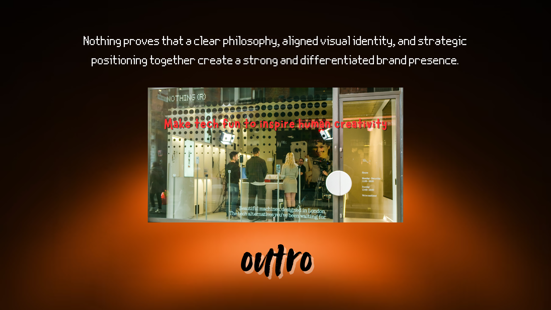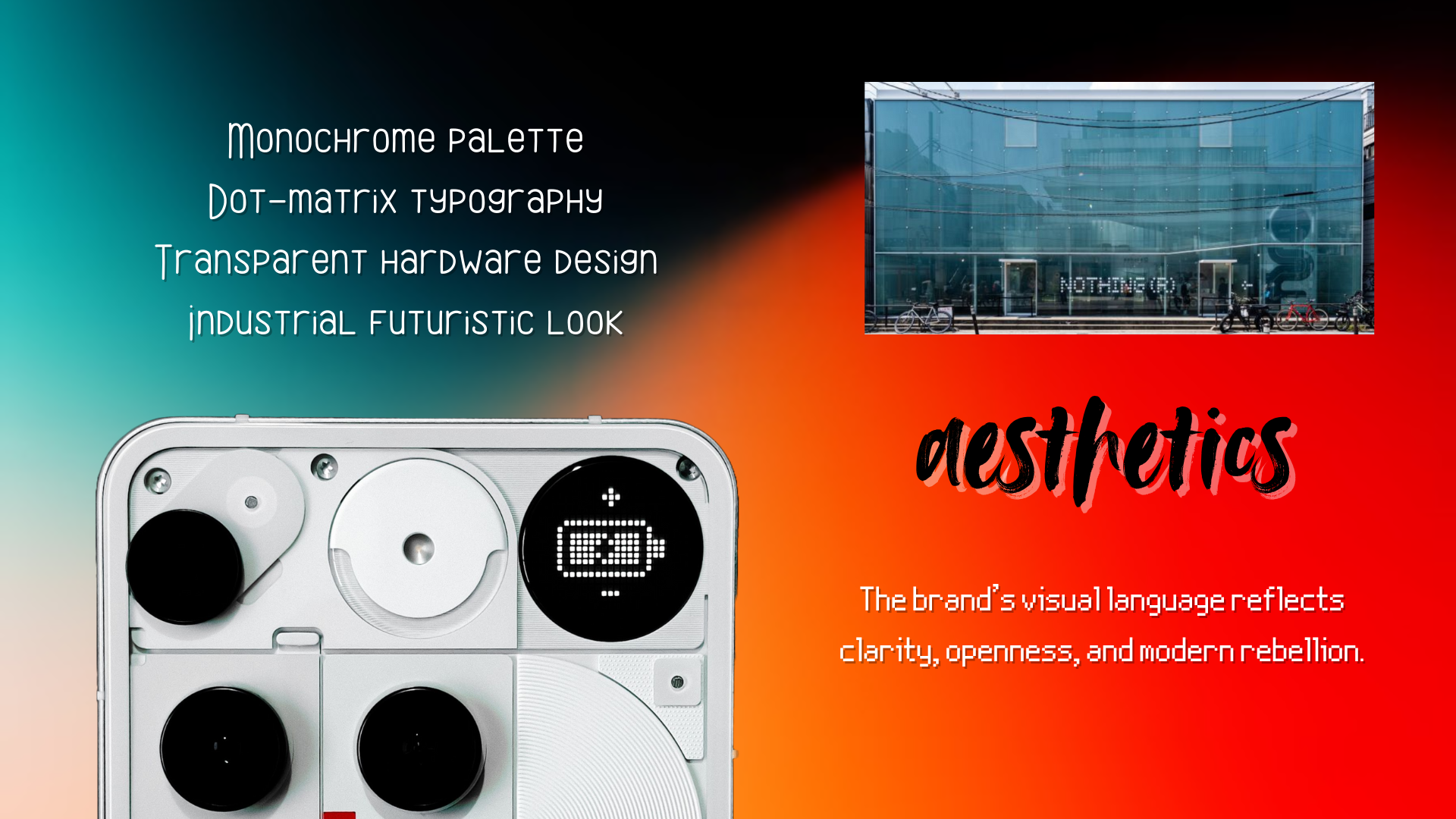 For my Visual Merchandising assessment, I analyzed Nothing’s brand identity and translated its transparent, design-first philosophy into a modular retail concept inspired by dot-matrix typography and the Glyph interface — extending its emotional, human-centered tech positioning into physical space.